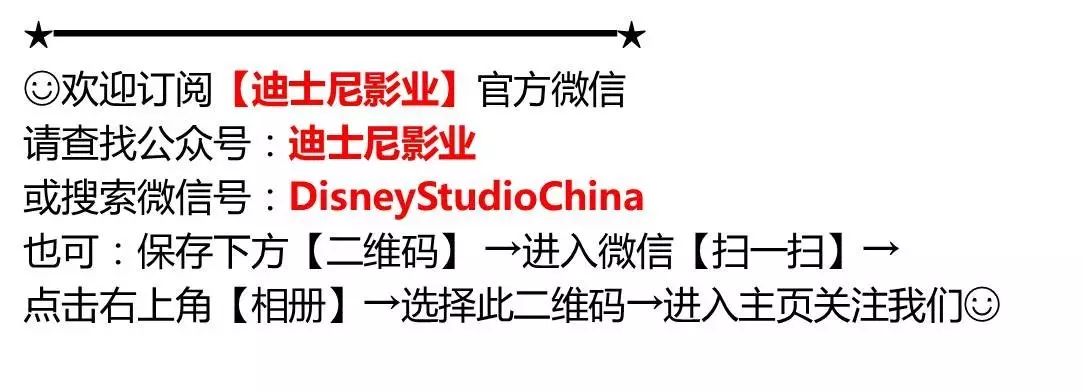 迪士尼影业官方微信帐号。与您分享迪士尼影业、皮克斯动画工作室、漫威影业、卢卡斯影业、梦工厂影业(真人电影)的最新讯息。一起来领略我们台前幕后的欢乐与感动吧! 作者微信号:DisneyStudioChina