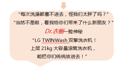 首先发言的是床上用品和窗帘们, 接着衣物们联名声讨, “以后洗澡的时候能不总让我们在里面跳舞吗? 那台旧洗衣机太晃啦!噪音又大,弄得我们很闹心” Dr.衣橱微微一笑,给大家带来另一款LG臻净洗衣机: “还有,每次只洗澡不除菌怎么行呢, 我们身上都积满细菌螨虫啦!” “这也好解决!我带来的新朋友 LG洗衣机通过独有蒸汽洗技术可以除菌除过敏原!” 看到大家的诉求得到了解决, Dr.衣橱神秘地说, 衣橱大会在大家一片欢声笑语中圆满结束, 大家所有诉求都被高效地解决, LG洗衣机,让大家告别洗衣战争! Dr.衣橱欣慰的笑了。 你的衣橱也如此和谐吗? | |
