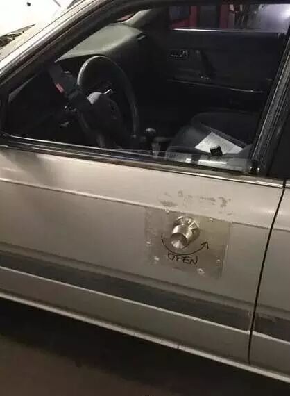 大哥,还是你厉害,原来都是你的杰作! 梯子不够,怎么办?········身子凑! 真是高手在民间,创意多多呀! 车门坏了,幸亏动手能力强,搞定! | |