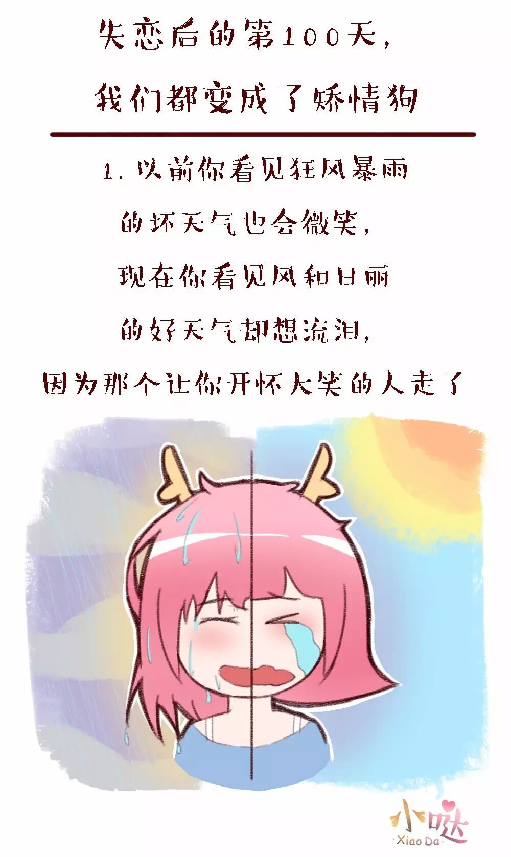 我是小哒,一个头上有犄角的姑娘,用段子吐槽感情,用鸡汤温暖伤害,最撩人的小哒,治愈每一个你,我们~都是好姑娘。 微信号:xdmh888