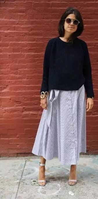 带你领略环球街拍,提供最多、最全、最及时的街拍讯息,呈现关于街拍的全面 秋天的凉意渐渐明显了,是否开始怀念套头针织衫的柔软温暖呢?这款秋季必备单品无论单穿或是内搭都非常实用,下面就看看单穿时怎么搭好看呢? 条纹针织衫清新极了,经典的航海风,肩部铜纽扣装饰,更显帅气,配白色喇叭裤时髦大气,整体倍感清爽。 米色针织衫较为宽松,很能藏肉哦,淡淡的颜色也显得温馨而知性,配紧身裤和短靴,背着棕色包包,简约怀旧,完全是秋日的感觉。 这款条纹衫比较靓丽,贴身款式,穿出优美曲线,搭配高腰牛仔裤和红色高跟鞋,干练利落,特别适合矮个女孩借鉴哦。 高领的针织衫简约舒适,很优雅知性,配黑色包臀裙、黑色靴子,欧美流行的性冷淡风,干干净净的感觉。 姜黄色针织衫配黑色九分裤,再配厚底的黑色乐福鞋,简单帅气,穿出阳光活力。 黑色针织衫超级显瘦,配浅色衬衫裙不那么沉闷,有点小文艺哦。 黑色针织衫配黑色长裙怎么才不显闷呢?首选裙子可以选择开叉的款式,再配一双清新小白鞋,整体就显得比较有活力了。 半高领的深灰色针织衫配灰色微喇裤,帅气迷人的中性风,尽显潇洒利落,小白鞋收尾,让整天不那么严肃。 街拍第一站,长按二维码识别关注 | |