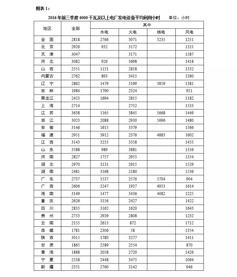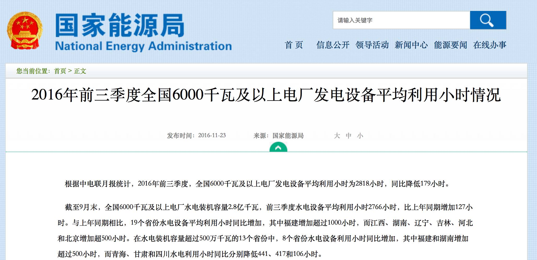 今天(11月23日), 国家能源局在其官方网站发布2016年前三季度全国6000千瓦及以上电厂发电设备平均利用 ...