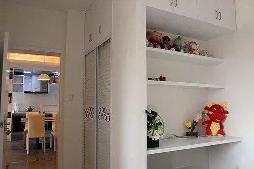 面积:80平 装修费用:12万(硬装全包,软装自买) 风格:现代简约 入户玄关: 正面白色的就是鞋柜,进门右手就是餐厅。大家看到右边有一整幅画,这就是进门一眼就能看到的。我以前觉得设计这些没有什么用处,现在看来真是好看。 客厅越看越喜欢,特别感谢颜色搭配这块,记得设计师说,地砖、壁纸和沙发,都是 一个色系容易出效果,还很有层次感。 客厅的这个白色收纳柜,既有装饰作用,又可以当酒柜,又可以收纳,特别实用,白色的很耐看。 厨房:因为空间实在太小,我们就把厨房做成了半开放式,刚入住不久,后面看情况吧,要是油烟太大考虑加个帘子。 卧室面积小,但是很舒服,尤其是这个角落的设计,一边放衣柜,另一边做成了置物架,很实用。 小飘窗也利用起来了,下面敲掉做了收纳柜。 | |
