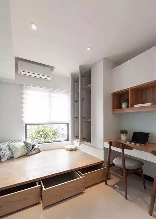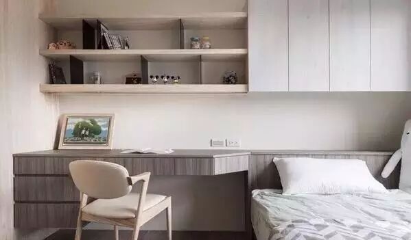 卧室比较小的搭配方法 小卧室书籍较少 假如卧室比较小,书籍也不是很多,那就在床头和床边做一个书桌,桌子上方做书柜。如果看书的空间希望更大,也可以把床缩小~将一面墙都做成柜子,在里面放上书籍,做成工作桌。 小卧室书籍较多 如果小户型的书比较多,我们可以将床做成可移动的,节省的空间用作书房使用。还能将床的下方放入柜体,增加储藏空间,床的旁边做桌子。以及在墙上做搁置架,下方做书桌。 小卧室书籍很多 书籍很多户型不大那就多做一些藏书空间吧。以及这种白天看书晚上睡觉的多功能空间。升降床也是一个很好的选择,节省了空间,将空间最大化利用。 卧室比较大搭配方法 大卧室书籍较少 实际上如果你拥有一个大卧室,那你应该也拥有大的房子,又足够的空间做书房。但如果你还是想做书房与卧室结合的方式。书不太多的话,挂上一小长条就足够了~ 大卧室书籍较多 书比较多的话,可以放在床的后方墙上,床的后面放一张书桌。 大卧室书籍较多 书比较多的话,可以放在床的后方墙上,床的后面放一张书桌。 装修电话:4008528869 0527-81981999 | |