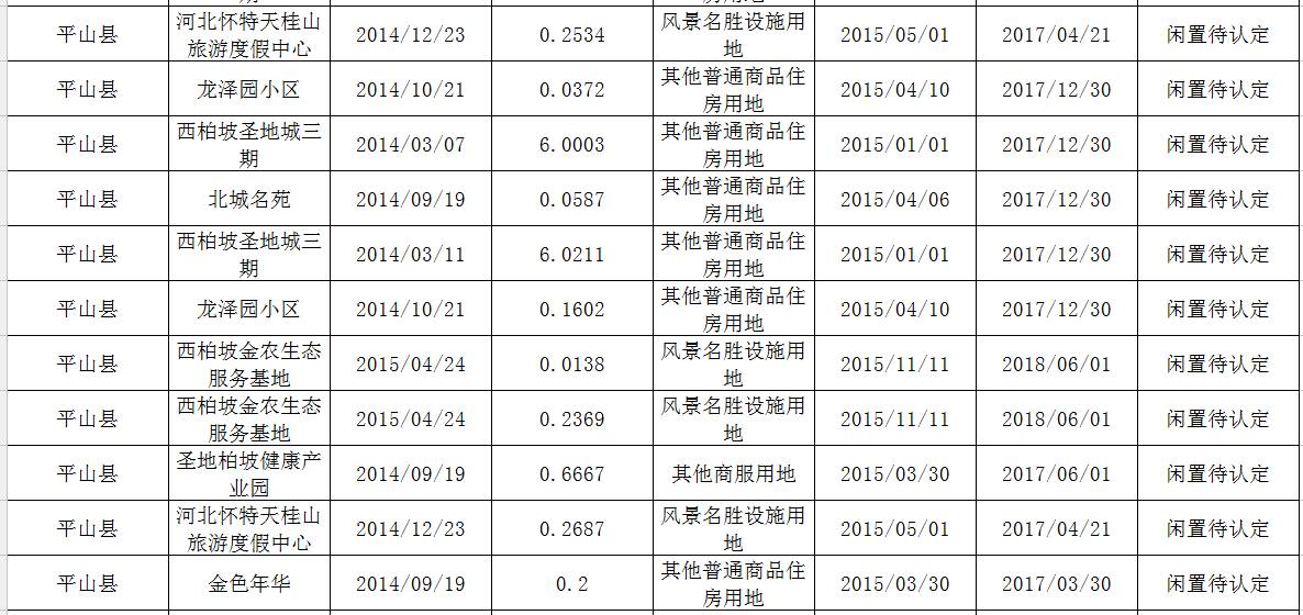 『不只房子 更关心你』 11月21日,石家庄市国土资源局公示了石家庄市区及周边县市的闲置土地98个,其中包含经济适用房、怀特集团投资的天桂山旅游度假中心、鹿泉区湿地公园及西柏坡圣地城三期等知名项目。 土地闲置由各种原因造成,不利于土地的合理开发和利用,甚至影响城市建设和容貌。2012年12月,石家庄市曾出台《关于切实推进节约集约用地的实施意见》,要求各级政府加大闲置土地清理和处置力度,并将建立闲置土地常态化监察巡查机制,对本辖区内供而未用、供后闲置的土地进行全面清理。 《闲置土地处理办法》中说明:闲置土地是指土地使用者依法取得土地使用权后,未经原批准用地的人民政府同意,超过规定的期限未动工开发建设的建设用地。 另外,以下几种情形也可以认定为闲置土地: 国有土地有尝使用合同或者建设用地批准书未规定动工开发建设日期,自国有土地有尝使用合同生效或者土地行政主管部门建设用地批准书颁发之日起满1年未动工开发建设的; 已动工开发建设但开发建设的面积占应动工开发建设总面积不足三分之一或者已投资占总投资额不足25%且未经批准中止开发建设连续满1年的; 法律、行政法规规定的其他情形。 此次发布闲置土地列表中发现均是闲置待认定状态,还未走调查和认定程序。从闲置土地处理办法中发现,调查和认定程序如下: 市、县国土资源主管部门发现有涉嫌构成本办法第二条规定的闲置土地的,应当在三十日内开展调查核实,向国有建设用地使用权人发出《闲置土地调查通知书》。 国有建设用地使用权人应当在接到《闲置土地调查通知书》之日起三十日内,按照要求提供土地开发利用情况、闲置原因以及相关说明等材料。 如果认定后,按照处理办法,将按照下列方式处理: 未动工开发满一年的,由市、县国土资源主管部门报经本级人民政府批准后,向国有建设用地使用权人下达《征缴土地闲置费决定书》,按照土地出让或者划拨价款的百分之二十征缴土地闲置费。土地闲置费不得列入生产成本; 未动工开发满两年的,由市、县国土资源主管部门按照《中华人民共和国土地管理法》第三十七条和《中华人民共和国城市房地产管理法》第二十六条的规定,报经有批准权的人民政府批准后,向国有建设用地使用权人下达《收回国有建设用地使用权决定书》,无偿收回国有建设用地使用权。闲置土地设有抵押权的,同时抄送相关土地抵押权人。 下附闲置土地全列表 石家庄市区: 石家庄高新区: 石家庄鹿泉区: 石家庄藁城区: 石家庄周边县市: 石家庄买房网微信组综合整理 深度好文关注公众号回复红色数字 回复数字1001~1217了解更多福利与资讯 1217丨好大胆!石家庄这个违规项目狡兔三窟 地上转地下 1216丨重磅!一个“招租广告”竟然道出了华夏幸福来石家庄的秘密! 1215丨厉害了我的庄!石家庄山前大道以后要变成这样! 1214丨石家庄住建局发布证件齐全项目明细,竟有4个项目已售罄! 1213丨停工多年的永邦天汇终于有动静了 另外这些楼盘也有新进展 1212丨石家庄这个开发商有背景?持续被曝光,竟然还没有被查处! 1211丨要沸腾!正定新区将建市规划馆 发展规划再升级! 微信读报13丨又一波大房企争相扎堆入驻!石家庄怎么了? 全民经纪人丨【燕赵都市报全民经纪人】无门槛,高佣金!只要你有人脉、有资源就赶快加入我们! 推荐阅读:点击下方图片阅读 点击图片浏览详细内容丨降了!降了!终于降了! 【燕赵都市报----带你去海南深呼吸!】 【点击阅读原文报名】 ↓↓↓ | |