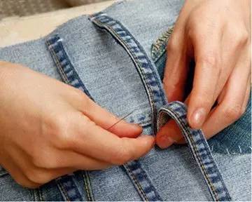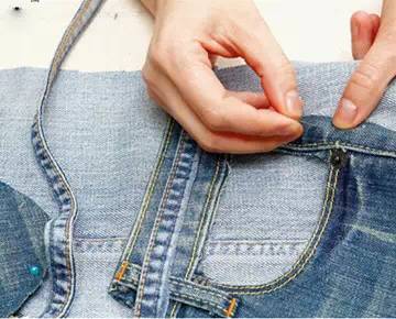 利用旧牛仔裤上的各色裤袋,剪裁、拼贴后就是一款全新的收纳袋;裤腿的接边也不要浪费,呈S形缝上,让收纳袋的功能更为丰富。收纳袋挂在沙发边,可将平日里难找的遥控器等小物件藏于其中;挂在书桌前,也可以用来收纳平日容易找不到的便签、笔等小物品。 自制收纳挂袋的做法制作步骤: 1 先裁剪一块30cm宽、40cm长的长方形布料。 2 将口袋剪下后,剪除内衬的多余面料。 3 留下硬边部分,将多余布料剪去。 4 用珠针固定袋子与硬边的位置。 5 而后用针线固定,留开置物口不缝。 6 硬边部分则只需固定头、尾和中间部分。 7 最后,按照需要接合一块长方形布料,将其塞入沙发边缝中以固定。 | |