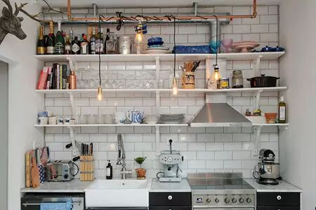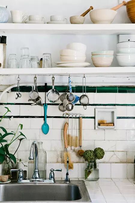 小户型厨房由于空间不足而常常选择一字型橱柜,而一字型橱柜的空间也是有限的,所以如何将收纳功能最大化利用是一个必须要解决的问题。下面就里一起来学一学一字型橱柜如何收纳吧! 选择一字型橱柜基本都是因为厨房空间不足,于是,解决一堆凌散物件的安置问题,成了每个烹饪高手的必备功课。台上、台上、周边,任何空间都不能放过,见缝插针、立体挂放,用尽各种收纳方案,为的就是给一字型橱柜一个宽敞的收纳效果。 1.台面上的精致 精细化见缝插针 在厨房的台面布局上,要以灶具和水盆为中心,灶具的上方不宜放置物品,以免发生火灾;微波炉要远离水盆,防止溅上水花;在保证厨房器皿触手可及的便利同时,也要防止物品掉落的危险,所以台面上的物品要尽量靠里侧放置。利用层板架增加使用率,或者充分利用很小的边角空间,把台面上的厨余垃圾及时清理,把每天必须要用的物品留下,不经常用的餐具和厨具要收纳起来,使台面的利用率得以提高。 由于一字形橱柜的空间相对较小,灶台的旁边不能设计拉篮,所以在角落上摆放双层的储物架,放置一些常用的器皿,高的瓶子放在上面,矮的器皿放置下面,常用的器皿可以放到旁边的层板架上,这样的布局方式简单好用。 按照功能的不同进行合理布局和摆放,小空间也可以有大作为,比如烹饪所需的用品放置在灶具的一侧,视觉上干净清爽,洗好的半成品放置在灶具和洗菜盆中间,以备烹饪所需。台面上物品的码放尽量靠最里面,或者按照功能成组摆放。 把有限的台面使用面积做到更大,抽拉式台面可以快速变成小砧板,切菜摆放均可。把台面部分功能做到弹性设计,游刃有余的地发挥其性能,使每个空间的利用率达到最佳,满足使用者的不同功能需求。 2.墙面形式多元化 厨房收纳的主力军 墙面的收纳功能是最强大的,形式也是多种多样的,可以做多层板设计,不用做柜门方便取用物品,或者利用墙面的本身的凹洞做收纳,也可以充分利用管道来大做文章,就地取材美观实用。双层的吊柜设计非常合理,下面的薄一些,上面的厚一些,射灯放置在上面的吊柜,在不影响使用的前提下,充分利用空间。墙面装置上可移动的滑杆,让锅碗瓢盆都挂起来,只要多准备一些s挂钩,将就能将墙面空间利用起来,且能做到美观有序。 层板造型和烟机融为一体, 按照使用频率放置,把不同的器皿和用具合理摆放,方便查找所用物品,按照每个功能区就近摆放,合理布局,起到事半功倍的效果,根据每天的烹饪需求自由组合器皿,实用性得到最大的发挥。 敞开式的层板设计独特,层板之间可用钢管链接,充分利用墙面的所有空间,展示物品一览无余。物品按照不同的使用频率放置,方便取用,还可以根据不同的菜品需要,自由交换器皿位置,也可以按造型摆放,创意出属于自己的个性化搭配。 质朴的空间里搭配可移动储物层板,可以根据物品尺寸自由调节层板的高度,也可以根据器皿的大小前后调节层板,以满足不同功能的需求。收纳的关键在于要多预留层板托的位置,提供更多的可能性,这样才便于层板灵活性的发挥。 双层吊柜设计是把强大的储物功能演绎的得淋漓尽致,在不影响正常使用的前提下,充分利用墙面上方空间。打造加深的吊柜,在提高储物的前提下,也为下方的吊柜提供充足的照明,通过细节的处理来体现墙面的利用率。 3.边角不容忽视 收纳配件有的放矢 要想合理化利用空间,厨房的边角是首选,墙面可以做打孔式的挂板,挂钩可以自由移动。利用角落空间码放整理箱,形成立体的储物空间。在任意一个不影响安全的地方可以做吸刀石,把家里的金属器皿挂起来。吊柜和层板结合,层板上摆放常用的器皿,把一些不常用的物品放入吊柜,把地面空间释放出来。作为临时用的活动架子,移动起来灵活方便,可以任意放置,不用的时候收纳起来,节省空间。 充分利用门后位置,把完全浪费的的空间变废为宝,在保证美观的前提下增加了更多的储物空间。打孔式的挂板灵活多变,挂钩可以根据需求任意插拔,能满足不同种类的物品所需,大到炒菜锅小到削皮刀,在这里都能很好的挂放。 桶柜的储物功能很强大,可调节式的层板可以适合任何尺寸的物品收纳其中。抽拉式的层板增加了趣味性和实用性,柜子内部加上射灯,即使最深处的物品也能看到,轨道式的柜门节省了过道的空间,保证操作区有足够的面积。 不同的层板搭配可以有不同的功能规划,层板设计在上面,挂杆在中间,然后是吸刀石,最下方还有挂钩。多种储物方式混合应用,可以更好的地节省空间,提高空间的储物效率,不同的器皿摆放在不同的空间,层次错落有致。 4.放大更多细节 趣味才能施展个性 好的设计体现在细节,不但美观而且实用。一些栅栏式的层板,可以起到透气的作用,防止滋生细菌。盛满器皿的托盘方便移动,擦拭桌面变的得轻松。下拉式的吊柜方便取物,巧妙运用转角空间,旋转拉篮让橱柜的最深处也变的得触手可及,抗菌的米柜小巧轻便。同等大小的器皿立体挂放,节省空间。倾斜的挂放可以增加挂放物品的数量,也可以更好的地取用。 挂出高格调 在墙面上固定上一个复古挂杆,随意将你淘来的各种好看的炊具挂在上面,复古的锅和盆,以及各种常用的物品一股脑儿挂在上面也无妨,就算不经常使用,只为挂着好看也足矣。 DIY的炫酷收纳架 仅有一个边角,不如用铜管做个实用