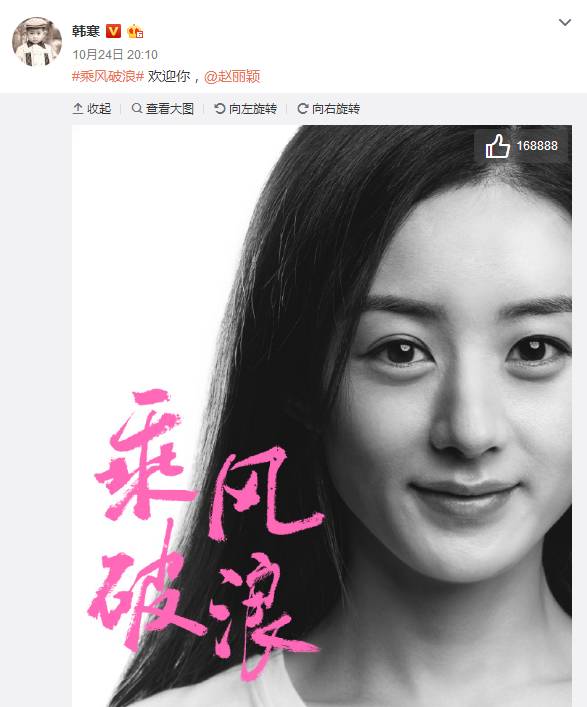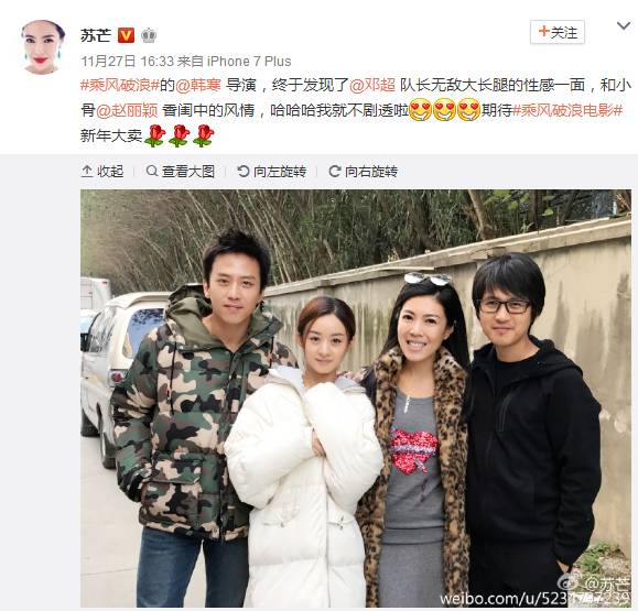 11月29日,赵丽颖参加了在上海举行一年一度的营销盛典,最受关注的获得今年的最具价值男女艺人奖。不出意料地新晋“千亿女王”赵丽颖最终凭借网络榜首数据和超高话题性摘得年度最具价值女艺人的桂冠。 由赵丽颖主演的电视剧,累计网络播映总量已经突破了1000亿!网络上赵丽颖的搜索数量、粉丝累积量和各类新媒体指数及口碑推荐量均保持极高的成绩,高居女艺人榜榜首。 现场赵丽颖被问及平时会不会关注指数时,赵丽颖进行了迂回宣传的回答“自己常常会在网上搜索,数据方面也能看到粉丝们数据盘点,从而来关注观众们更喜欢什么类型的作品,透露自己目前参演的韩寒导演的作品《乘风破浪》可能在春节就能跟大家见面。 赵丽颖即将上映的电影《新永不消失的电波》。 还有明年暑假湖南卫视《特工皇妃楚乔传》,想一想2017年又是赵丽颖霸屏了。 11月27日,苏芒探班韩寒新作电影《乘风破浪》,在微博晒出与赵丽颖、邓超、韩寒的照片,配文:“终于发现了@邓超 队长无敌大长腿的性感一面,和小骨@赵丽颖香闺中的风情,哈哈哈我就不剧透啦” 一张照片引起网友开始调侃七超歌的大长腿。网友说,超哥大长腿是娘娘罚他跪榴莲跪出来的。星姐觉得好有道理呀! 网友对赵丽颖的喜爱程度已经不能阻挡了。 《乘风破浪》是韩寒的第二部电影,在选演员上的眼光还真的是独具慧眼,赵丽颖是目前娱乐圈流量主,也是最具潜力最具有价值的女艺人,相必片酬不会低喽。 据悉,在电影里,邓超和赵丽颖扮演的角色分别是儿子和妈妈!还有彭于晏演的是邓超的爸爸,董子健、易小星也参与电影的拍摄! 目前赵丽颖已经进组,电影拍摄也在进行中,有赵丽颖好有探班赵丽颖,并且在微博晒出与赵丽颖的合照,配文:这几天探班很开心,乘风破浪剧组的人都很好,还有各种各样的下午茶.....星姐不得不感慨果然真的就是美女和美女玩。 央广网曾评价:赵丽颖是最不会说话的姑娘,却是最会演戏的演员。 耿直girl赵丽颖却因再次语出惊人上热搜,赵丽颖的耿直、说话实诚是早就众所周知的,直说综艺有剧本。 在偶像来了时被封外号“赵小刀”,娜姐还曾玩笑说她的耿直让她在宫廷剧里顶多活一集。 星姐还记得赵丽颖在为诛仙做宣传时,赵丽颖被问及是否会出席即将举行的“双陈”陈晓陈妍希婚礼。赵丽颖这么回答的:为什么要参加?而被记追问后,赵丽颖回应称自己要拍戏,无法去婚礼现场。 这样的霸气回复也只有她和郑爽了~ 可以加星姐私人微信了呀! 长按下方二维码或搜索 Starago 即可关注“明星” ▼ ▼ | |