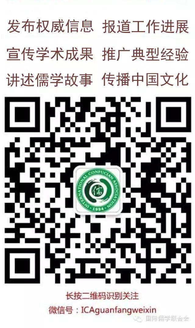 国际儒学联合会成立于1994年,是由中国、韩国、日本、美国、德国、新加坡、越南等国家和香港、台湾地区与儒学研究有关的学术团体共同发起的国际性学术组织,是儒学团体和儒学学者的联合会。 微信号:ICAguanfangweixin