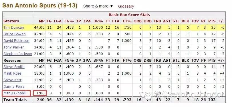今天吉诺比利在他的推特上隆重推出了自己的第一期英语版推特,介绍与篮球之神迈克尔-乔丹在场上的“第一次”交锋,也是生平唯一一次交锋。 对妖刀在段子手界的地位,粗爷早有耳闻,但这是吉诺比利本人第一次庄严承诺用英语写推,鸡冻得粗爷赶紧沐浴更衣,隆重打开! 哇擦,不看不知道,一看吓一跳。马努这推特不愧是NBA段子手MVP啊。从第一段开始,马努就已经开始黑波波了…… “Back then, Pop wasn’t the Pop he is today and was not resting players at all. ” 那时候,波波还不是今天的波波,他还不会去轮休什么球员。 “The chances of playing significant minutes were slim but not null, I would’ve been happy with five or six good minutes in which maybe, I was gonna guard him a couple time or be guarded by him. Who knows? Well, Pop. Of course.” 我知道要打上一段时间的机会很渺茫,但不是没有,我觉得就算打五六分钟自己也不会开心。我可能要防守他(乔丹)几次,或者被他防几次。谁知道呢?当然是波波老头知道了! “在我记忆里,比赛就是这样进行的。比赛开始了,空气里充斥着兴奋的赶脚!第一节压根不关我鸟事,但我满怀期待。第二节大部分时间过去了,我还是在那没人鸟,然后我开始担心了。当我准备进更衣室时,波波突然转身对着我说,‘上去把邓肯换下来!’挖了个擦!(注:这四个字是粗爷为了气氛需要主动添加)我现在想起来自己大概打了7秒钟,7秒,秒……我压根连球都没碰到,TM的(气氛需要)乔丹那时候也没上场!没关系,比赛是48分钟,我还有整个下半场可以上去。我会满意的!” “下半场我都在积极热身了……但什么也没发生。第四节最焦灼的时候,波波连个头都没有回。然后比赛结束,我们输了。那是2002年12月31日,没有胜利,没有乔丹,好惨的结局!你们可能会安慰我‘别担心小子!主场还有一场比赛呢,那时候等你健康了就可以上场了。’噢噢噢噢。。。放屁!他们已经两周前来圣安东尼打过了,就在我扭伤脚踝后的几天。MJ-MG(马努-吉诺比利)之间的对决将永远不会发生。” 然后,吉诺比利为了确保自己确实记忆清晰,没有夸张,当即去查了资料。他说他想去安抚自己,其实那段记忆没有他想象得那么糟糕。结果果然大吃一惊。 BR上给出他的上场时间是1分钟! 段子手继续:等一等……我真的打了一分钟!没我想得那么糟!而且我还有一次出手。真的不错啊,可能那一记出手很不错,涮筐而出!主要因为防守实在太好了,应该就是这样。为了知道更多挑战我的大脑记忆,我又打开了当时的文字直播…… 原来我才打了5.2秒!然后在40英尺扔出了一个空气球!但当时MJ确实在场上,只是在另一边被鲍文防守着。当时打小阵容,波波不想邓肯背上第三次个人犯规,然后让马努打了个酱油! 粗爷为了证实这一切,还找到了当时的珍贵视频资料。吉诺比利记得没错啊,当时半场结束还剩5.2秒,邓肯被替换下场(虽然镜头没给出谁换下了邓肯,不过我们都知道了)。然后当时奇才发界外球……留给马努的时间不多了! 然后奇才控卫全力推进,运到前场球出界,离半场结束还有0.7秒……值得一提的是,这个奇才控卫正是如今骑士主教练泰伦卢。 吉诺比利必须感谢泰伦卢一发,不然他真的连球都没机会摸一下…… 最后直接从底线发给中场球员,这个在中场用左勾手出手半场三分的正是吉诺比利。很抱歉,画面不够清晰,从头到尾都没有给你一张特写。 丫的,出场5.7秒还要毛特写! | |