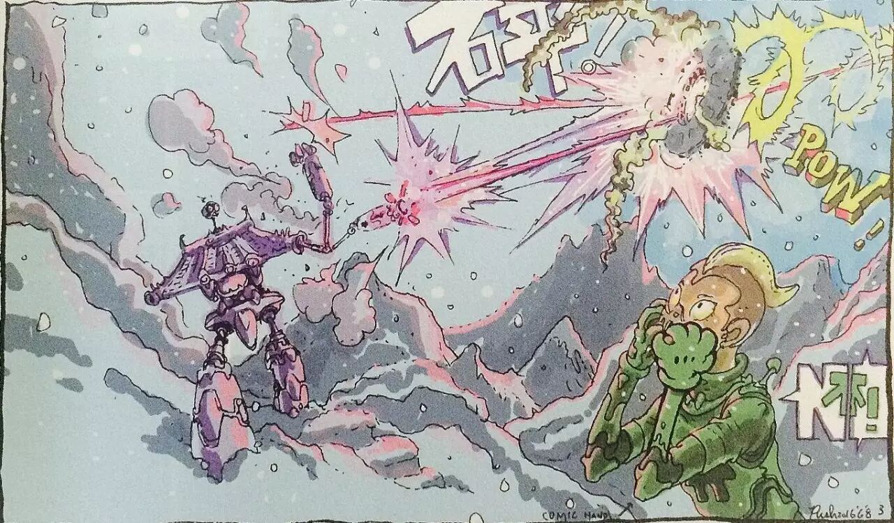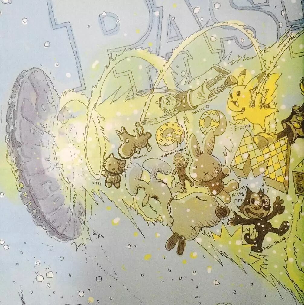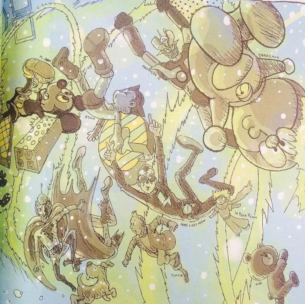 比如,五月天的阿信。 比如,台湾独立设计师,插画家不二良。 又比如,《星空》的导演,林书宇。 那么,这个漫画家,到底是谁? 最酷的漫画家,最潮的艺术家 阿推,台湾著名跨界漫画家,除了漫画创作外,涉及领域十分广,包括唱片美术主编,漫画编辑,助理教授,玩具设计等等。 阿推自画像 从1985年出版第一本书《太极符》开始,阿推的漫画便影响了台湾的很多人。 后来创作的漫画《巴力入》《九命人》等漫画更是让阿推风靡一时,陪伴着很多台湾80后的青春。 1995年,阿推作为台湾首位漫画家以《超人巴力入》登入欧洲市场,法国漫画月刊KAMEHA连载并登上月刊封面。 都说优秀的人总是容易吸引优秀的人,阿推也一样。 众所周知的阿推的铁杆粉丝就有华语乐团的超人气乐队五月天的主唱阿信。 因为怀念学生时代和同桌一起看阿推老师作品的时光,2010年,五月天阿信和他创立stayreal潮流品牌小伙伴的不二良,一起邀请阿推,再次全新推出阿推的代表作《超人巴力入》,并邀请艺人高以翔扮演主角巴力入。 “社会的规则由坏人定、好人玩。”——《巴力入》 就连女神林志玲也是《巴力入》的忠实粉丝。 (诶,志玲姐姐你居然看这么硬汉的书?!) 2012年,阿推老师授权漫画角色,与钟汉良合作“黑花Hey Wow !” 而到了2013年,阿信再次联合潮流品牌stayreal,推出《九命人》经典复刻版,并由阿信角色扮演与封面视觉设计。 2015年,第八届中国国际漫画节开幕式暨第12届金龙奖上,阿推凭借《乒乓狗》获得金龙奖「最佳剧情漫画」奖。 接近欧式的叙事方式,科幻漫画的画风,东方人的思考模式,使得阿推的漫画自成一派,拥有着明显的个人风格。 而当想象力与创造力已经在漫画这辆车上逐渐超载的时候,很多其他方面的发展亦便随之而来了。 从平面到立体,从漫画,插画到杂志封面,多媒体,从玩具,服装饰品到街头文化,广告。在阿推的身上,我看到了漫画家想象与创造的多元性。 阿推的首只玩具创作- BORN WILD 1角兽- ONE HORN BEAST- 阿推 vs. agnis b 积木熊 - 阿推 vs. Mecicom 想象与创造,让他成为漫画界的不老顽童。 如此多元切毫无违和感的跨界漫画家,本花只能借坂本大佬的话来形容了。 Cool Cooler Coolest! 接下来,让我们一起走进,阿推的奇妙幻想世界吧。 《风竹城》——城市的狂想曲 《风竹城》是阿推老师受自己的家乡,台湾新竹县的邀请,在根据新竹县的人文景观特色进行创作的。并在中国第八届漫博会“动感金羊”中获得了最佳漫画奖。 在科幻的画风和丰富的想象力之下,阿推将自己的家乡谱写成了一曲鬼马城市狂想曲。 男主角小风,是个速度非常快的快递员。 女主角中竹,是个DJ,在一次意外的邂逅之下,与快递小风暗生情愫。 男配大城,一直喜欢着中竹,却总是被拒绝。 以为这是一个普通的狗血三角恋?那你就错了。 在偶然风竹城的神秘守护者「小精民」留下的分开成3块的「神奇魔法漫画书」后, 三人的命运便与风竹城的未来交织在一起。 「小精民」一直守护着风竹城,并希望运用这本魔法书,将这个严肃而现实的社会变成快乐的漫画空间,也就是, 将一切变成漫画。 而与之相对的,便是风竹城里心怀鬼胎的三个神秘人——长仔,宽仔和高仔。 长宽高三人企图利用小风的高速度传输,将超能源传输到战争武器中,以启动武器引发战争,从中谋取利益。 而在小风将超能源传送到武器,把武器复活时,魔法书的力量竟然也启动了! 在时空机器的传输下,漫画世界的人物逐渐被传送到风竹城的现实世界当中, 史努比,蝙蝠侠,米奇,丁丁,阿童木...... 都被传送到了现实的风竹城。 甚至,风竹城里面的人也逐渐变成了漫画人物的样子。 一边是无法控制的战争武器,一边是逐渐变成漫画的人类世界, 风竹城陷入了一片混乱当中。 幸好,被启动的战争武器自动将启动他的小风当做是主人,破坏了漫画人物的传输机器时空轮,并在小风高呼停止战争后,乖乖地听从了命令。 一切又恢复了平静。 但由于时空机器已经被毁坏,已经被传送过来的漫画人物已经无法回去,只能留在风竹城。 自此,风竹城变成了一个融合了漫画与现实的神奇之地。 【后记】 都说中国漫画不输在技术,而是在于故事,在于没有自己的风格。 我想,阿推身上最值得国内漫画家学习的地方,不是画风或其他,而是对于自我风格的坚持。 阿推的强烈个人风格曾经也在台湾市场碰壁,屡屡遭出版社的否定。 但在日系漫画风行的台湾,他却依旧选择坚持自己的风格,不向市场潮流妥协。 这,也许就是一名漫画家最难能可贵的专业素养吧。 馆花心事 ? “让想象力永不枯竭。” - - - - - - - - - - - - - - - - - - - - - - 动漫艺术家 看 多 是 会 上 瘾 的 投稿邮箱:gdca388@163.com | |