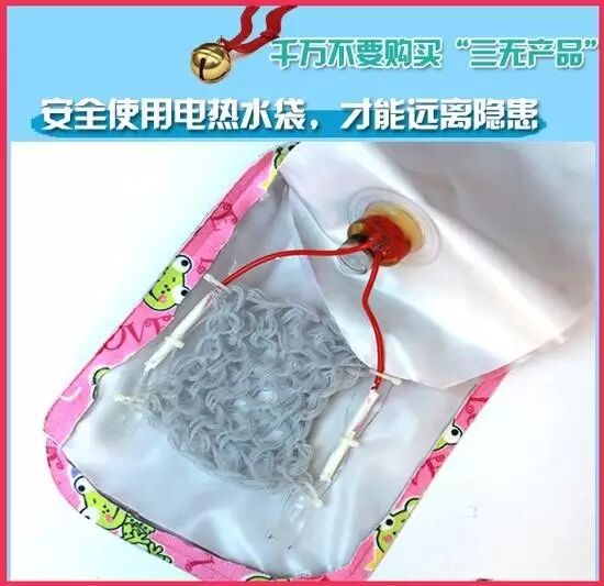 最近天气越来越冷了,起床是不是都得使出“洪荒之力”?南方人听说北方人过冬,靠暖气! 北方人听说南方人过冬,靠一身正气!!! 其实,南方人除了一身正气还有取暖“神器”! 热水袋,电热毯,取暖器,暖宝宝,空调…… 女性朋友都会在冬季为自己置办,这么一个方便又时刻都温暖的小物件。 ▼ 「电热水袋 」 花花绿绿的真可爱,最便宜的十几块就能搞定,销量也是一路飙升,简直就是捂手、暖被窝的魔物! 可你知道吗?你买的暖手宝可能,已被禁止销售啦! 先来看看新闻。 ▼ 6岁女童右脸被大面积烫伤,留下黑色伤疤 日前,广东一户人家在为电热水袋充电时,电热水袋突然爆炸!6岁女童右脸被大面积烫伤,留下黑色伤疤。(央视新闻) 之前类似的爆炸事件, 其实也层出不穷的, 但时间一长,大家就忘记了, 我们来看看过去的新闻: 热水袋爆炸:美女遭毁容 2014年12月23日晚上11点多,已经在床上的小甘觉得被窝很冷,她把电热水袋插上了插座,而让她没有想到的是,危险正悄悄向她靠近。“平常都是加热到一定程度会自动跳掉的,可当时一直没有反应,我就准备拔插头,就在这时电热水袋突然爆炸了。”小甘回忆,那一瞬间眼前一黑,感觉像是一盆开水从头淋下。 (大洋网) 电热水袋突然爆炸,2个月大宝宝烫伤 5月22日晚上,南京秦虹小区张先生家里的电热水袋突然爆炸,才两个月大的宝宝被烫伤。原来,宝宝的奶奶5月16日患了“颞下颌关节病”,张不开嘴,医生建议“早晚湿热敷”。奶奶将冬天暖手用的电热水袋拿出来使用,不料烫伤宝宝。两个月来,宝宝每天都在承受烫伤之痛。医生诊断,孩子面颈胸部及上肢约有20%面积Ⅱ度烫伤,可能要输血浆、植皮。 (人民网) 2月大婴儿屁股被严重烫伤 2013年9月24日早上9点,小依琳躺在被窝中把床尿湿了,小依琳的妈妈张女士赶紧把小依琳放在了湿床单的旁边,并像往常一样,在被尿湿的地方放了一个充电热水袋,想用热水袋的温度把床单烤干。 谁知,大约8分钟以后,就听见砰地一声,然后便传来小依琳的哭声。张女士赶紧跑过去掀开被子,一看,竟是热水袋炸开了,裂开一条七八厘米长的口子,滚烫的水让小依琳哇哇大哭。 专家表示:电热水袋分两种,一种是 电热丝(管)式热水袋 ,一种是 电极式热水袋 。 电热丝热水袋 ▼ 电极式电热水袋 ▼ 2010年11月1日起正式实施的《家用和类似用途电器安全储热式电热暖手器的特殊要求》,已经明确将“电极式电热水袋”列为禁止生产产品。 这是为什么呢?电极容易生锈,当锈末进入液体时,会导致液体电阻力降低,加热功率提升,进而温度升高。这时如果温度控制器失灵,液体超过一定温度后就会因气化而爆炸。 另外由于在加热时液体本身会带电,又没有过压保护装置,因此这种电热水袋在发生爆炸或泄漏时,使用者不仅会被烫伤,还很可能触电。 而电热丝(管)式热水袋有绝缘线圈,能把发热体和液体隔离开,相对比较安全。 电极式热水袋容易发生漏电和爆裂危险被禁止生产销售。但因为生产成本等问题,“电极式电热水袋”依然为生产厂家所青睐,市场上仍然大量存在。 如何辨别电热丝热水袋和电极式热水袋呢? 可能连商贩都不知如何区分的电热丝(管)式热水袋 or 电极式热水袋。 买电热水袋,可用手轻轻捏一下 ① 如果于袋子底部能摸到网状物体,则为电热丝式热水袋; ② 若是能摸到内部有一个体积较大的U形或圆弧形管子,则为电热管式热水袋; ③ 如果捏到的是两截硬邦邦的圆柱体,就是电极式热水袋! 你还要注意以下几点 ① 在正规商家购买正规厂家生产的产品,产品必须具有国家3C认证和产品合格证,布料应选用防火面料。 ② 检查电热水袋密封是否完好,电源线是否完好无损,电源线接口是否有裂纹或其他安全隐患等; ③ 避免电源长时间连接,电源长时间不拔,易发生触电。而且充电时间不宜过长,应在指示灯熄灭后2分钟内终止充电,以延长其使用寿命。 ④ 不要放在腰部或其他身体部位用力挤压。 在使用热水袋时,不少颈肩不舒服,以及腰部或是脚步容易在秋冬受寒的朋友,经常会把充电热水袋加热以后,放置在这些身体部位,放是可以,但是如果使用过度或是使用不注意,对充电热水袋产生超负荷的压力,就有可能会让充电热水袋爆裂。 ⑤ 从桌上滑落,摔在地板上 易让热水袋故障。 如被烫伤该如何处理? 一冲二脱三泡四盖五送 “冲”即用流动水冲洗。第一时间用冷水冲洗伤口,以减轻伤口受热程度;若条件允许,用冰块冷敷伤口,但有的地方不宜冰敷,如心脏、腹部、足底; “脱”是在水中小心剪开并脱去衣服,否则衣服上的热量得不到散发继续作用于创面,会使创面加深。 “泡”是在冷水中持续浸泡烫伤处30分钟。 “盖”是用干净毛巾等覆盖烫伤处。暴露在外的伤口,不要用布包裹,立即到医院就诊。 “送”就是尽快送医院。 此外,医生提醒家长不要依烫伤偏方自行处理,千万不要涂抹酱油、醋、酒、牙膏以及其他有色物质,以免影响医生对烫伤深度的判断。 小儿烫伤后,如有发烧、局部疼痛加剧、流脓等情况,说明创面已感染发炎,应请医生处理。 医生提醒:要防止低温烫伤盒诱发皮炎,婴幼儿,热感觉迟钝者或者生活不能自理者严谨使用。 生活实验室栏目曾就暖宝宝的低温烫伤做过相关实验,实验显示当电极式暖宝宝充电时间 8 分钟后,其温度可以达到 71 ℃。 而皮肤接触 70 ℃的温度持续 1 分钟,就有可能