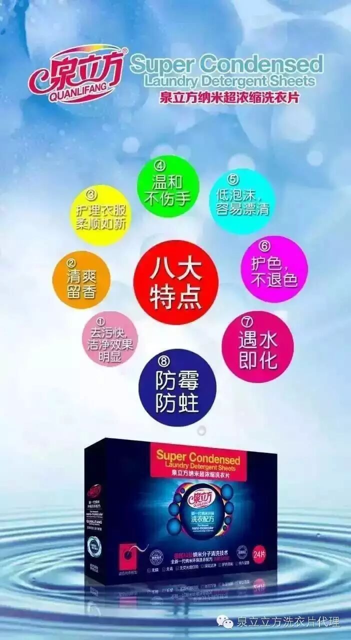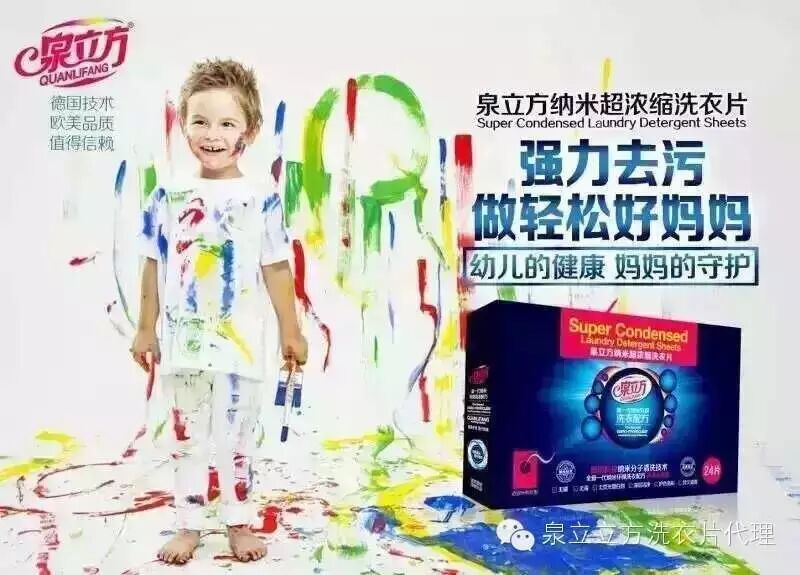 宝妈们什么事你最头疼的事? 除了照顾宝宝健康安全,其实每次宝宝弄得一身脏后辣妈们恐怕都会烦躁得不行。宝宝身上如此多不同种类的污渍到底应该如何去除,才能确保宝宝衣物的干净,呵护宝宝肌肤健康? 婴幼儿皮肤娇嫩,需要细致呵护,购买衣物和漂洗衣物同样要谨慎,正确购买衣物是把好第一道关,科学漂衣物是做好第二步,如何科学漂洗衣物呢? 1、污渍尽快洗 孩子的衣服上总会沾上许多果汁、巧克力渍、奶渍、西红柿渍等,这些污渍不易清除,但只要是刚洒上的,马上就洗,通常比较容易洗掉。如果过了一二天才洗,脏物可能深入纤维,洗不掉了,所以不要做懒妈妈。 2、不与成人衣物混洗 婴幼儿的衣物,不要和成人的衣物一起洗涤,因为成人衣物上沾着更多细菌,同时洗的话细菌会附着在婴儿衣服上。建议单独洗婴儿的衣物,并用专门的盆。 7、选择专用洗涤剂清洗 市场上有许多婴幼儿衣物的专用洗剂,但是很多都含有荧光剂。 8、手洗 因为洗衣机洗全家人的衣服,机器内藏着许多细菌。婴幼儿衣物经洗衣机一洗,会沾上许多细菌,这些细菌对成人来说没问题,但对婴幼儿可能就是小麻烦。因为他们的皮肤抵抗力差,很容易引起过敏或其它皮肤问题。 1泉立方为何要火? 洗衣粉和洗衣液即将退出历史的舞台,因为真正强大的产品即将登场!泉立方强力在哪?突破洗涤传统,定义全新模式。从此告别含有荧光剂、磷等成分的有害洗涤产品,更强劲的洁净、除味、护理效果,让健康生活从洗衣这件小事开始! 关于泉立方打破传统的洗涤模式,泉立方洗衣片和色母片,你从未见过的新型洗涤产品。原来衣服还可以这样洗!洗衣按量投入片状洗衣片,不用勺子不用量杯,简单又快捷。泡沫适中极易漂洗,避免反复漂洗的费水费电又费时。不同颜色衣服一起洗涤,不必分类,不用担心混洗串色问题。随便你爱怎么洗就怎么洗!笛梵永远超乎你想象,就是这么任性。 三心沁总结泉立方的诞生不仅仅是有了一个新的洗涤用品,更是一个时代的变化,是技术到达一个新高度时,一个更加优势的产品诞生在我们的面前,从洗衣皂被洗衣粉代替,洗衣粉被洗衣液代替,现在,洗衣液将被洗衣片代替,洗衣新方法已经来临!一个新的洗衣产业已经开始,洗衣片的优势是传统洗衣产品无可比拟的,不管是清洁上,健康上,环保上,价格上,效率上等等都远超传统洗涤产品!这也是为什么洗衣片一推出,就受到欧美国家的极力推崇! CCTV央视一套泉立方广告你不能再无视泉立方的引领洗涤行业趋势和品牌实力过不了多久,它就会进入千家万户你还在犹豫吗 泉立方与国际连锁集团家乐福强强联合 笛梵国际革命性洗涤新品泉立方纳米超浓缩洗衣片和泉立方纳米防串染色母片自上市以来备受行业关注,在行业内销售占比不断扩大,并创造了一个又一个销售奇迹,赢得了消费者的广泛认可和推崇。 了解更多扫描二维码或加微信号bb13894590051 | |