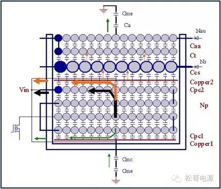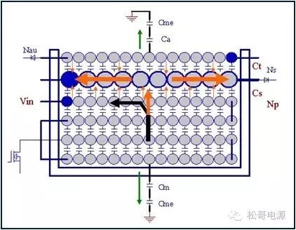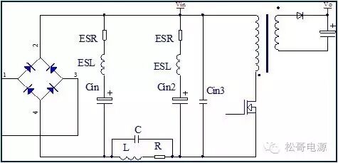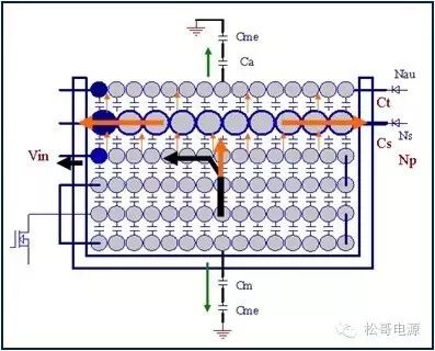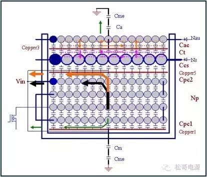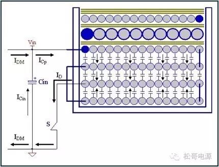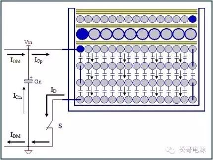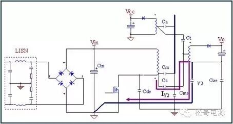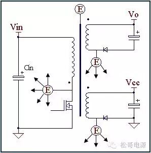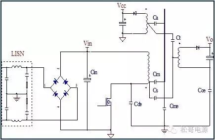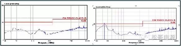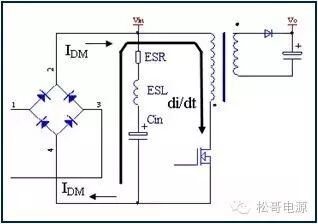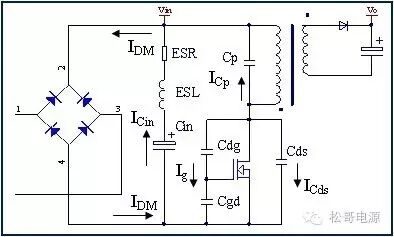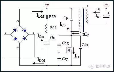 本文是作者在2005年所写的一篇文章,也是对那一年多时间所做的工作总结,部份内容发表在《电子设计应用》2007.9期杂志上。因为这篇文章作者认识了很多电源行业的朋友,也经常有很多朋友与作者讨论这篇文章。这一次将此文整理分享出来,虽然文中有些观点需要进一步的研究,但是文章的内容对于理解EMI以及如何解决EMI问题仍然具有参考价值。 目前Y电容广泛的应用在开关电源中,但Y电容的存在使输入和输出线间产生漏电流,具有Y电容的金属壳手机充电器和一些特殊电器会让使用者有触电的危险,因此这些设备的制造商目前开始采用无Y电容的设计,然而摘除Y电容对EMI的设计带来了困难。具有频抖和频率调制的脉宽调制器可以改善EMI的性能,但不能绝对的保证充电器通过EMI的测试,必须在电路和变压器结构上进行改进才能使充电器满足EMI的标准。 1、EMI 常识 在开关电源中,功率器件高频开通、关断操作导致电流和电压的快速的变化是产生EMI的主要原因。 在电路中的电感及寄生电感中快速的电流变化产生磁场从而产生较高的电压尖峰: VL = LS · diL /dt 在电路中的电容及寄生电容中快速的电压变化产生电场从而产生较高的电流尖峰: iC = C · duc /dt 图1:MOSFET电压和电流波形 磁场和电场的噪声与变化的电压和电流及耦合通道如寄生的电感和电容直接相关。直观的理解,减小电压变化率du/dt和电流变化率di/dt及减小相应的杂散电感和电容值可以减小由于上述磁场和电场产生的噪声,从而减小EMI干扰。 1.1 减小电压变化率du/dt和电流变化率di/dt 减小电压变化率du/dt和电流变化率di/dt可以通过以下的方法来实现:改变栅极的电阻值和增加缓冲吸引电路,如图2和图3所示。增加栅极的电阻值可以降低开通时功率器件的电压变化率。 图2:栅极驱动电路 图3中,基本的RCD箝位电路用于抑止由于变压器的初级漏感在开关管关断过程中产生的电压尖峰。L1、L2和L3可以降低高频的电流的变化率。L1和L2只对特定的频带起作用。L3对于工作于CCM模式才有效。 R1/C1,R2/C2,R3/C3,R4/C4和C5可以降低相应的功率器件两端的高频电压的变化率。 所有的这些缓冲吸引电路都需要消耗一定功率,产生附加的功率损耗,降低系统的效率;同时也增加元件的数目和PCB的尺寸及系统的成本,因此要根据实际的需要选择使用。 图3:缓冲吸引电路 1.2 减小寄生的电感和电容值 开关器件是噪声源之一,其内部引线的杂散电感及寄生电容也是噪声耦合的通道,寄生电容包括漏源极电容和栅漏极的Miller电容,但是由于这些参数是器件固有的特性,电子设计和应用工程师无法对它们进行完全的抑制。减小开关管所在回路的尺寸并用宽的PCB 铜箔,可以最大限度地减小寄生电感。 变压器是另外一个噪声源,而初级次级的漏感及初级的层间电容、次级的层间电容、初级和次级之间的耦合电容则是噪声的通道。初级或次级的层间电容可以通过减小绕组的层数来降低,增大变压器骨架窗口的宽度可在减小绕组的层数。分离的绕组如初级采用三明治绕法可以减小初级的漏感,但由于增大了初级和次级的接触面积,因而增大了初级和次级的耦合电容。采用铜皮的Faraday屏蔽可以减小初级与次级间的耦合电容。Faraday屏蔽层绕在初级与次级之间,并且要接到初级或次级的静点如初级地和次级地。Faraday屏蔽层使初级和次级的耦合系数降低,从而增加了漏感。 2、传导干扰 2.1 LISN EMI测试由传导干扰CE和辐射干扰RE组成,这两种噪声分开的检测和评价。对于不同的应用,不同的地区和国家都有相应的标准,这些标准对于频段的宽度和限制值都作了十分明确的定义。例如对于手机充电器属于FCC15/EN55022 CLASS B,传导干扰测量的频率范围为0.15MHz到30MHz,辐射干扰测量的频率范围为30MHz到1GHz,具体的内容可以参考相关的标准FCC,CIRPR和EN等。 传导干扰指在输入和输出线上流过的干扰噪声,测试的方法见图4所示。待测试的设备EUT通过阻抗匹配网络LISN连接到干净的交流电源上。 图4:LISN及EUT测试 LISN的作用如下: ① 隔离待测试的设备EUT和交流输入电源,滤除由输入电源线引入的噪声及干扰。 ② EUT产生的干扰噪声依次通过LISN内部的高通滤波器和50?电阻,在50 ?电阻上得到相应的信号值送到接收机进行分析。 由图4可见:EUT放置在绝缘的测试台上,测试台下部装有接地良好的铁板,测试台及铁板的尺寸和安装都在特定的规定。 传导干扰来源于差模电流噪声和共模电流噪声,这两种类型的噪声干扰见图5所示,Y电容直接和传导干扰相关。 图5:差模电流和共模电流 差模电流在两根输入电源线间反方向流动,两者相互构成电流回路,即一根作为差模电流的源线,一根作为差模电流的回线。共模电流在两根输入电源线上同方向流动,它们分别与大地构成电流回路,即同时作为共模电流的源线或回线。 理论上1MHz以内主要是差模干扰,增大 X 电容就可以滤除差模干扰。5MHz以上主要是共摸干扰,可以通过以下方式滤除共摸干扰: ① 输入或输出加共模电感。 ② 加大对地Y电容,改变Y电容的连接方式。 ③ 调整输出的动点和静点位置。 ④ 变压器外面包铜皮,内部加铜皮屏蔽层。 ⑤ 变压器输出端和它连接的二极管或次极同步整流管之间串联小磁珠。 ⑥ 输出整流二极管或次极同步整流管加吸收电路。 1MHz-5MHz同时存在着差模、共模干扰,而且后面还会分析,差模和共摸干扰