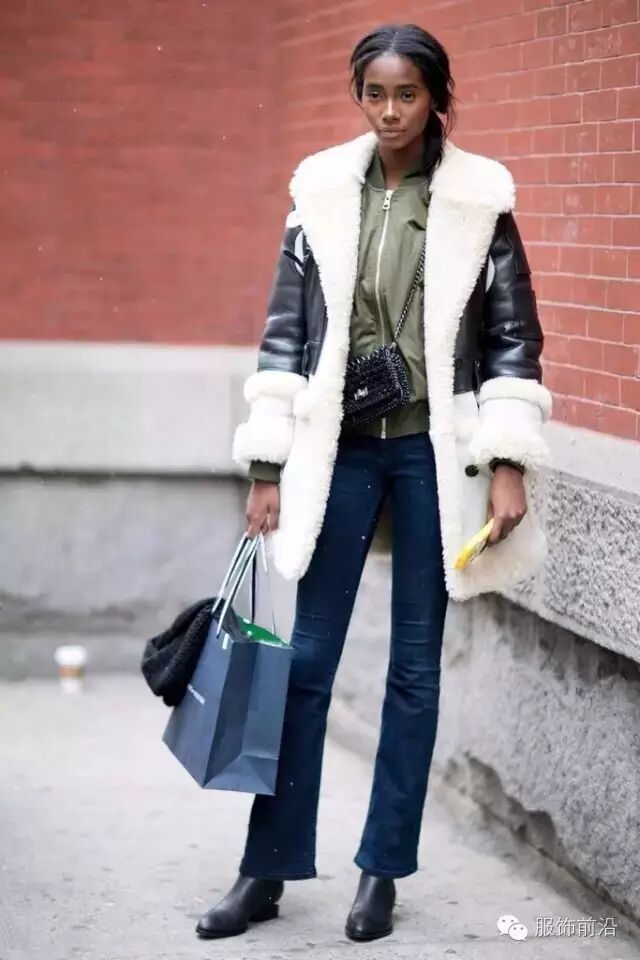 这两天连温暖如春的深圳都降温了,一开门,冷飕飕的寒风就扑面而来,突然间明白,那些在留言里说:“你穿成这样来北方试试!”的真正意义~ 看这妹纸冷的:脸色发白,牙齿都打架了~ 于是再看到类似这样的着装,都忍不住想说:来来来,过来咱俩聊聊,穿成这样,真的不冷吗? 那么,要如何在冷天里穿得暖的前提下还能不丑,就成了每个想美又怕冷的女生冬日最大的困扰,今天精选的40张羊羔毛外套街拍造型,用事实说话,穿成这样不但不冷还很时髦,再也不用担心有人“想找你聊聊”了! 羊羔毛外套+窄腿裤+机车靴,又帅又拉风 羊羔毛英文名Lamb Wool,又叫羊仔毛,是冬天衣服里面常用的一种材质,因为极佳的保暖性和时尚感并重而大受欢迎。羊羔毛外套也是这几年冬季一直都在线的时尚单品之一。 在大多数人眼中,羊羔毛外套,就是代购口中常说的:皮毛一体外套,通常是特指皮革拼接羊羔绒的翻领飞行员外套 从羊羔毛的分类来说,有直毛和卷毛 从羊羔毛的布局而言,可内可外,可以用作边条装饰 所以羊羔毛外套的分类和款式其实是很多的 为什么大家喜欢羊羔毛?毫无疑问最大的优势在于羊羔毛的保暖性~但是羊羔毛又的确是很难驾驭的单品之一 穿得好,你最时尚你最潮;穿得不好,你就是土肥原 羊羔毛外套通常是具有机车风的代表性单品,oversize款式也很常见,加上厚厚的羊羔毛,本身就更厚重了,为了平衡起见,下面穿窄腿裤是最保守也是最不出错的选择 羊羔毛下面搭窄腿裤,这样不论是穿靴子还是穿球鞋,都很好搭,随意又方便 窄腿裤或者leggings,“攻”力十足 踩双尖头高跟,瞬间女人的性感指数就飙升 极好的裤装选择就是牛仔直筒裤,减龄又保暖 里面穿几条秋裤也不易被察觉 想要风格,大可以裤腿上来点印花啥的。 比起直筒和窄腿裤,阔腿裤更拉轰~ 想要更显年轻,穿条9分的配双堆堆袜再踩双牛津鞋~ 当然,想穿裙子的也可以,不过你得选择保暖的打底,里面套件深V的丝质裙,再套上你的羊羔毛大外套,保暖和美腻,一气呵成。 更多搭配示范: | |