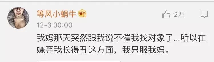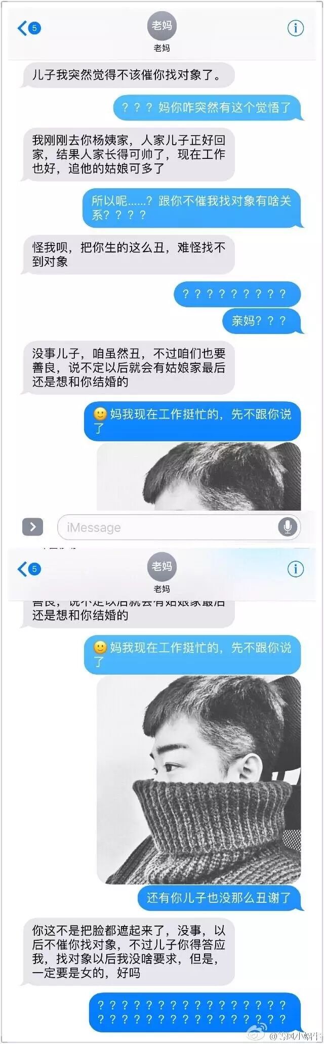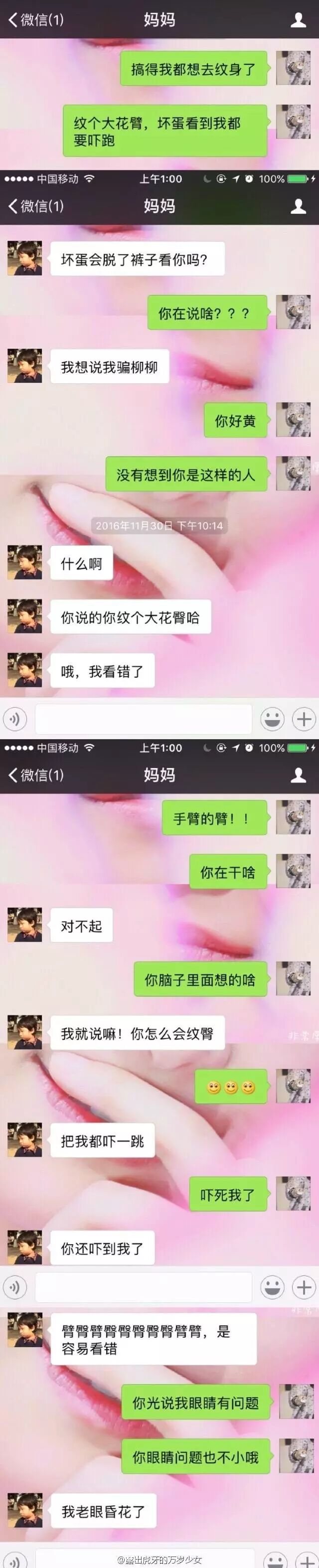 晒一个,你和爸妈的聊天截图 楼下评论简直笑炸了 你们爸妈也这样么? 爸爸心里只有你啊, 就像我找表情包很多都是回复我男朋友的。。 哈哈,斗图赢了没有? 为了让你妈不为你操心 你来追我啊... 哈哈哈哈哈笑死爹了 不好意思我笑喷了哈哈?? 一不小心说了大实话啊啊 套路太深, 鼻涕都笑出来了!! 其实是你爹找你要资源。。。 你知道得太多了哈哈哈哈。。 老摩羯完胜?? 可是她头像还是你俩合影~ 啊!那个表情包好可爱!! 对不起 这个 我真没忍住 笑了 哈哈哈看到那句 我才是不老的神话笑死我了。 看一遍笑一遍,照片看起来确实年轻有活力呀。 是小鲜肉没错 笑出声哈哈哈。。 对不起,我也看错了?? 那你为啥在下午五点睡觉? ??没毛病啊... 嘴上说不要, 身体却很诚实嘛。?? 同一个世界,同一个爸?? 最后一张,哇~好有爱~ 果然跟爱的人做什么都不无聊~ | |