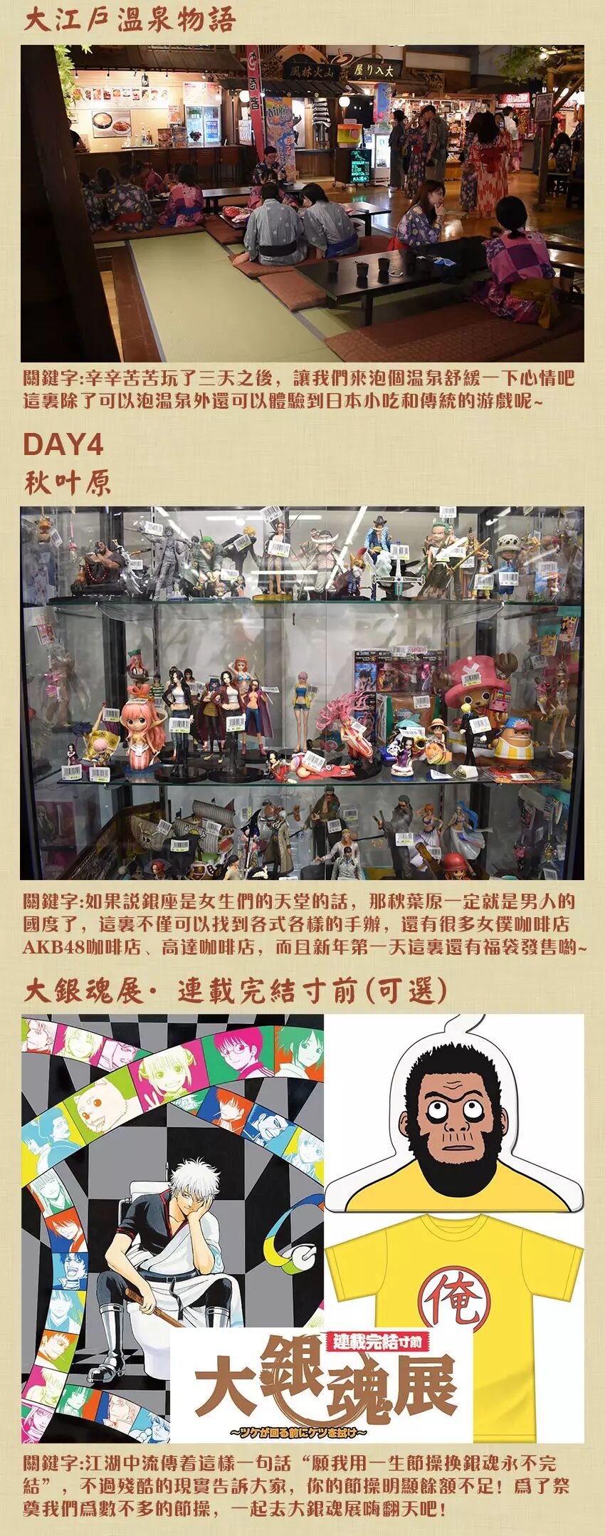 东京塔海贼王乐园、JUMP主题馆、二次元的天堂秋叶原、以及大银魂展! 有生之年不想去看看吗? 不用担心语言问题,在日本呆了十年的老司机带团! 不用苦苦排队等入场,行程中的景点门票早早为你准备好! 你需要做的只是带好相机和放松的心情跟着我们一起~ 这才是旅行的不是吗? 由于酒店房间紧张,现减少名额,取消息包车,费用直降1500!还有最后2个名额!错过要等明年啦~ 报名请加QQ群:389514006(有问题欢迎来咨询) | |