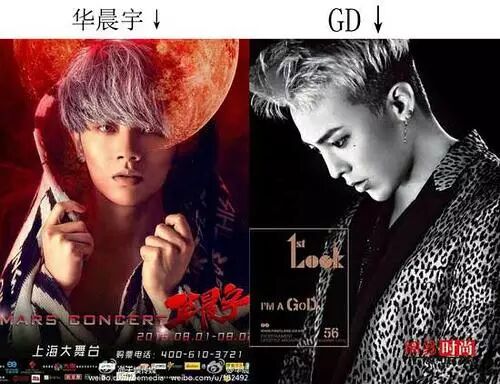 都说权志龙圈粉丝钱,人品一般,不过让人不得不注意到的是,国内很多明星的风格跟权志龙很像,当然风格不是专利,并不能说孰优孰劣,只是,这样太巧合了吧! 1.吴亦凡 吴亦凡mv综合了gd一些mv的造型和场景,BAD GIRL副歌和crooked类似,可以说打了擦边球。 副歌还真的有点像… july和bad girl的mv与gd的mv 2.魏晨 魏晨是明显抄袭,mv多处细节基本一模一样,微博发的很多东西前后脚照搬gd的ins。 破晓mv以及造型 3.黄子韬 cinderella girl和missing you的歌词 黄子韬这个歌词不是同一个语言,但是翻译过来这几句似乎太像了,有没有借鉴不好说。 4.罗志祥 够了mv以及造型 5.华晨宇 华晨宇这个我不太懂啊,他的音乐风格和gd并不一样,为什么他的团队总是用这样的标题宣传,以及整容和造型越来越像韩国爱豆的烟熏妆。 华晨宇完全是团队让他整容,加妆容越来越靠近韩国爱豆。。 | |