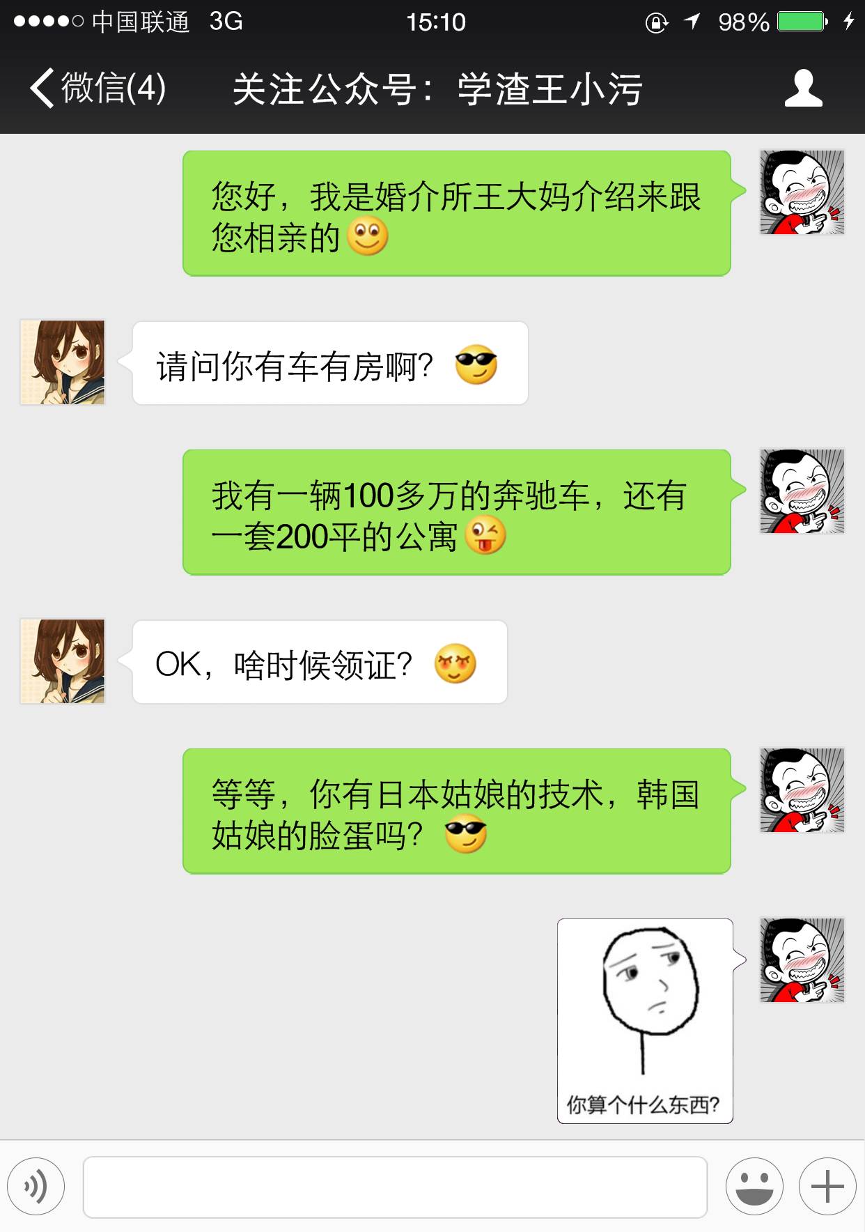 ?搞笑对话:相亲对象问你有车有房吗,该如何回答?