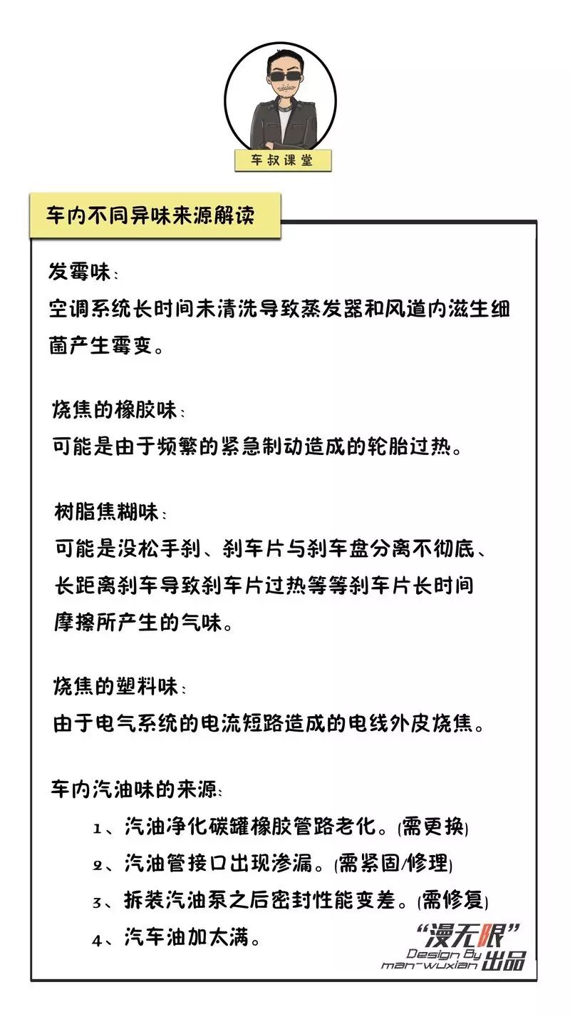 汽车点评 cardianping 对于很多人来说,车可是男人的第二个家,甚至是第二个老婆!据说有些爱车的男人,即使和老婆吵架一气之下想要离家出走,很多也都只是躲在自己的爱车,里打会儿游戏消消气,如果还没缓和,那么最多也就是在车里凑合一晚过过夜而已。爱车男士即使在家里邋遢成性也要把自己的车打扫的一尘不染(车叔对此点表示严重怀疑)。车对于男人如此重要,那么对于爱车的男人来说车内一旦有了异味,应该是最让他们头疼和难以忍受的事情了。今天车叔课堂就为大家讲讲关于车内异味的相关常见问题。 汽 | 车 | 点 | 评 知名KOL车叔领衔打造 让你成为懂车帝 精选内容,独到观点,深度评论 商务合作QQ:1256371861 | |