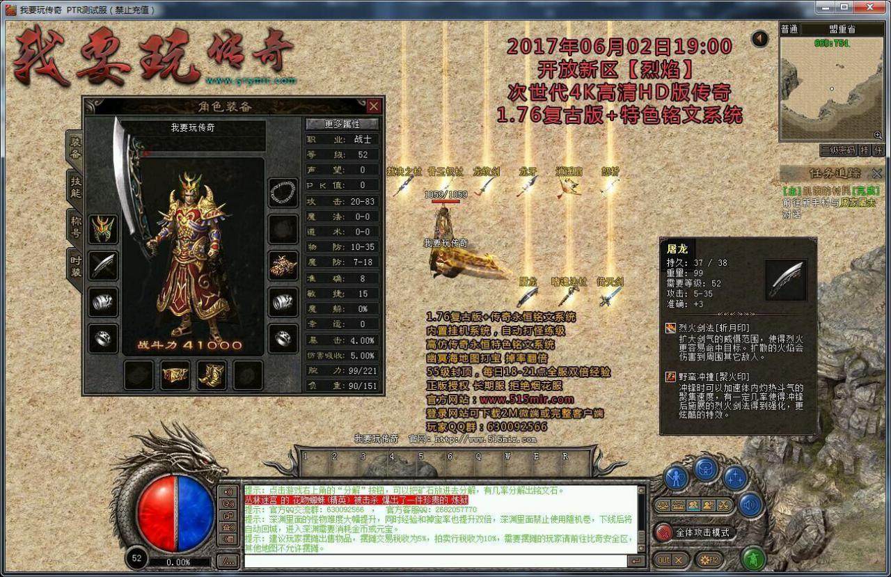 1.76复古版+传奇永恒铭文系统【拒绝变 态服 拒绝睹 博服】 55级封顶,每晚开启双倍经验,内置自动打怪挂 机系统 2017年06月02日19:00 开放新区【烈焰】 官方Q Q 群:630092566 网址:www.515mir.com 非老传奇端,网站下载2M微端或完整端即可开始游戏 ![]() | |