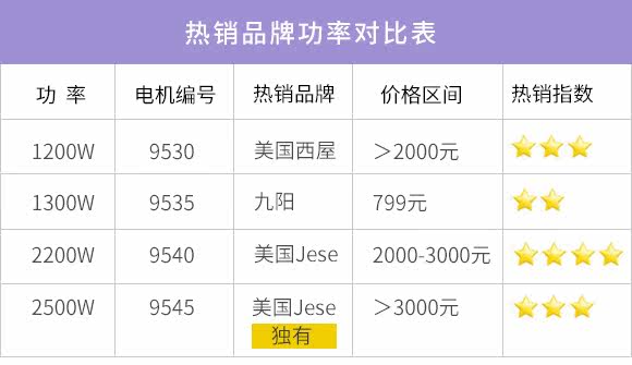 被称为小家电市场的下一个风口,破壁机近两年市场容量高速膨胀,品牌数量在2017年更是出现了井喷。根据可靠的破壁机市场调研报告显示,99.66%的受访者非常认同破壁概念,而且有63.82%的受访者更愿意购买500-1000元的低端破壁机,但已经购买了破壁机的受访者仅有13.39%。 电机直接影响功率![]() 低端产品同质化严重,尽管价格相对比较大众化,但消费者不愿相信低价商品能达到破壁效果。而拥有自主升级能力的高端产品,在市场竞争中各有所长。但经过长时间的市场验证,最终还是回归到“功率”的比拼当中,因为大功率是影响破壁率高低的直接因素。因此,在破壁机行业中也流传着“低于2000W的都是假破壁机”的说法。 市面上在售产品上标注的功率各有差异,对应的电机也各有不同,以国内知名家电品牌美的、九阳,以及热销外资品牌Jese、Vitamix为例,搅拌功率可从1200W到2500W不等,对应的电机型号以及价格也各有不同。从下表可以看出,随着电机编号后两位数值的递增,对应的功率也在增加,也意味着单位时间内所释放的能量更大,从而保证更高的破壁率。 定子厚度决定电机强度![]() 电机定子是发电机和起动机等电机的重要组成部分。定子是电动机重要的部分。电机编号前两位数字,如95,表示定子外径,编号后两位,如40,表示定子厚度。定子厚度越厚绕线线圈越粗,根据公式R=p*l/s(p为材料电阻率,l为长度s为横截面积)可知线圈越粗导线上的电阻越低。电阻低使得通过相同电流时的损耗降低,电机运行更加稳定性。 用三维变频驾驭大功率电机电机定子上的损耗会直接转换为热能使得电机在工作过程中温度上升,采用更厚定子的电机损耗更小,温升幅度更低。电机在运行过程中由于各材料的热膨胀系数不同,在温度升高过程中会产生不同情况的热膨胀,造成电机组件之间产生间隙变化以及裂缝产生最终导致电机损坏,过高的温度也会加速各元件的老化。定子厚度增加,温升降低可以有效的提高电机的使用寿命。 ![]() 定子厚度增加能有效的降低电机工作过程中的损耗提高电机的运行效率。使得电机能在相同电压、相同频率、相同负载情况下产生更大的扭力。所以采用高功率电机能有效的提高破壁机的破壁率。 作为破壁技术领域中的“黑科技”,三维变频技术是一种专门为拥有高功率与加热功能的破壁机开发的变频智能控制技术。该项技术是在智能手机级别的ARM内核芯片中,植入智能3.0控速和模糊逻辑控制两项核心程序。Jese破壁机的AI智能化,标志着Jese从传统破壁转向与人工智能领域跨界联合的新尝试。 为了在变频破壁机上实现该项技术,Jese实验室在传统破壁机的基础上植入霍尔传感器、温度传感器和变频控制器。前两者用于监测破壁机运行时的各项参数,并将参数实时传送到变频控制器当中。变频控制器通过对各项参数进行实时分析和判断后,发出联动控制信号,驱动破壁机的加热和搅拌模块协同工作,让破壁机始终保持最佳的工作状态,让食材释放更多营养,实现加热破壁效率最大化。 | |