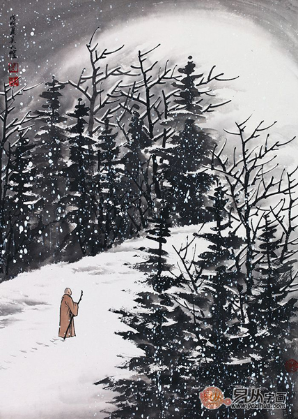 一场雪下不尽冬天的冷漠, 眺望远方茫茫白皑,在晨光里构筑四季冰雪封存, 走过的路面,承载风霜;登过的高原,浸满雪月...... 冰天雪地总让人感到入骨冰凉,而在吴大恺的笔下却多了几分温情,禅意人生书画卷,恬淡凝思逸悠然,这里有几幅吴大恺的雪景图一起来欣赏吧。 当代名家吴大恺雪景山水画《雪中温情》【作品来源:易从网】 ![]() 若似月轮终皎洁,不辞冰雪为卿热。 在一望无垠的白雪世界中,家的方向却是那么清晰, 袅袅炊烟指引着归家的路途,即使冰天雪地也挡不住家人之间的浓浓情意。 收藏之选 吴大恺雪景山水画《雪中问禅》【作品来源:易从网】 ![]() 在白茫茫的冰雪世界中,一位刚出家的弟子向高僧问禅, 他说:特入空门问苦空,敢将禅事问禅翁。 高僧答曰:为当梦是浮生事?为复浮生是梦中。 雪景小品画 吴大恺最新国画《独钓寒江雪》【作品来源:易从网】 ![]() 千山鸟飞绝,万径人踪灭。孤舟蓑笠翁,独钓寒江雪。 在大雪中的孤单小船,上面有位身披蓑衣的渔翁在垂钓, 无论外界环境如何恶劣,他仍坚守己心,风骨铮铮。 吴大恺新品雪景山水画作品《岁月无忧》【作品来源:易从网】 ![]() 浮云一别后,流水十年间。 漫天风雪中,一人一屋一狗,安然自在, 悠悠时光长河也不惧。 吴大恺最新力作雪景国画《当兴天地相来往》【作品来源:易从网】 ![]() 竹杖芒鞋轻胜马,谁怕,一蓑烟雨任平生。 一位僧人在雪中踽踽独行,出世修行不问岁月, 只望哪天可以看遍红尘之外的风景。 当山水被雪景所浸染,便是一种遗世而独立,忘却红尘事的悠然意境。雪韵山水吴大恺则是用自己不同的艺术语言来向我们讲述着这冰天雪地中的美与境界感,是对自然的一种表达,更是对自然的赞美,借以展露对生命的向往,是他在艺术之路中不断求索的结晶。 | |