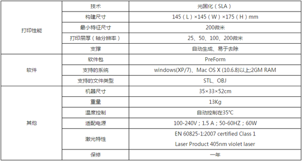 ![]() Form2 3D打印机是Formlabs公司推出的第二代基于SLA技术的桌面级3D打印机,能够提供打印更大的体积,更智能的组件方式。与第一代产品相比,Form2在打印体积、激光功率、打印流程、人机交互方面都做了优化和改进。Form2的打印可靠性,提升了行业标准,将复杂的技术通过直观的界面展示出来。 ![]() 现在甫定科技就来为大家介绍这款Form2 3D打印机。 在打印性能方面,其打印的最小特征尺寸达到最小特征尺寸,采用了光固化(SLA)技术,重量为13Kg。详细的Form2 桌面级SLA光固化3D打印机技术参数如下: ![]() 在可使用的耗材方面,Form2 桌面级SLA光固化3D打印机使用液态光敏树脂作为打印耗材,采用瓶装,共有五种: 1、FormLab光敏树脂:打印出的模型质地坚硬,表面光滑,有透明、白、灰、黑四种颜色。 2、Flexible光敏树脂:打印出的模型具有较强的柔性,可以弯曲变形。 3、Castable光敏树脂:Castable树脂材料专为熔模铸造打造。使用这款树脂打印出的模型不仅精度高,还可以应用在珠宝制作、金属物件等的铸造加工。 4、Form2还能够打印耐高温树脂和高韧性树脂等工程材料。 5、Form2能够打印具有生物相容性的牙科用树脂。 甫定科技这款“Form2 3D打印机”,是基于第一代进行改造,能够提供打印更大的体积,更智能的组件方式,增加了打印的可靠性,提升了行业标准。 | |