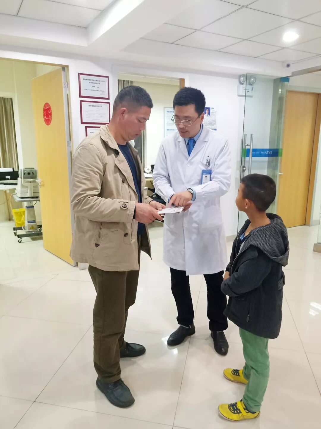 2019年4月13日,这是普通又特殊的一天,正在工作中的杨主任,迎来了一位特殊的小朋友,这位小朋友在漫长的求医路上已经耗费了很多的时间和精力,也在被告知无法查明视力异常的原因时,经历了一次次的失落与不甘。但这一次在杨主任的治疗与帮助下,他终于重新看到“希望”。 几经波折,辗转几处求医,花费数千元检查费。 董坤杰小朋友是大河新民中心小学的学生,因为眼睛看不清,视力模糊,成绩也是一落千丈。班主任老师发现问题后立即反应给了学生的家长。通过沟通才发现孩子视力异常。当即为学生调换座位到前排。学生家长在得知情况后不久特意带孩子去医院做检查,希望查出原因,找到解决办法。但是辗转几处求医,也未能得到解决办法。 近日,桂林爱尔眼科医院近视防控专家杨福建主任带领医护团队走进大河新民中心小学,为在校学生开展近视防控知识讲座以及公益普查活动。班主任老师在得知这个消息后兴奋的通知了学生家长。于是董坤杰小朋友的爸爸立马带着一沓资料急匆匆赶来学校,只为赶来咨询杨主任,找回孩子那个清晰明亮的世界。 通过视力检查以及与家长沟通,发现董坤杰小朋友确实有视力异常的问题,还需要更进一步的了解,于是立即预约了4月13日周六下午的时间。 沟通检查 → ← 检查过程 周六下午,董坤杰小朋友在爸爸的陪同下来到桂林爱尔眼科医院,在询问后得知他们曾四处求医,奔走在各大医院。主要因孩子的视力异常而发愁:不管怎么矫正孩子的视力都得不到提高,达不到正常同龄人的视力,之前也做过验光,眼底照相 OCT 视野, ERG 等检查,就是查不出视力异常的原因。经过杨主任耐心详细的检查,用进口的尼德克(NIDEK)综合验光仪为小朋友验光后,视力居然能矫正到1.0,孩子的爸爸一下子就高兴起来啦,孩子的爸爸说本来过来检查也没打算抱太大的希望,今天终于查到原因啦! 医护人员耐心的为小朋友试戴眼镜。 “爸爸,我看得见了,很清楚”董坤杰小朋友开心的说。配镜后,杨主任为小朋友再次复查,并耐心的告知注意事项,注意健康用眼。 小朋友家长发自内心的感谢 几经波折,终于找到了视力异常的原因,董坤杰父子是怀着感激之心走的。诚如杨福建主任告诉我们的那样,大家的肯定,就是对我们最大的褒奖。 | |