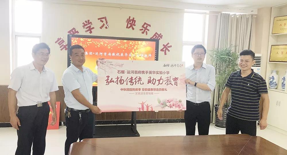 时间是一条线 四季流年 回首漫漫成长路 老师陪伴我们走过春夏秋冬 引领我们仰望日月星辰 …… (示意图,来自网络) “教诲如春风,师恩似海深” 作为传道授业解惑的教师 他们一直在自己的工作岗位上 无私的奉献着自己的光和热 (示意图,来自网络) 助力教育 助力城市未来 值此“教师节”,9月10日,石榴运河首府在邳州英华实验小学进行“弘扬传统 助力教育”爱心捐赠仪式,向长期以来辛勤工作的学校教职工致以崇高的敬意。出席本次捐赠仪式的有英华实验小学相关领导、石榴集团相关领导。捐赠仪式上,石榴运河首府捐赠了大量助学物品和助学金。 点击添加图片描述(最多60个字)英华实验小学领导发言表示,感谢石榴集团爱心的关注,让辛勤耕耘的教师们得到更多的关爱,受到更好的尊重,让他们的教育生活更加美好! (现场照片) (现场照片)石榴集团:让更多的人住上好房子 中国百强房企石榴集团成立于2007年,总部设立于北京,屡获长城杯建筑奖、国家级奖项“广厦奖”等等殊荣。石榴以出色的品控与优秀的服务成为中国领先的品质物业服务商。从津京冀到长三角、珠三角,石榴集团聚焦中国最具活力的核心城市群,为人们创造富有自豪和尊严感的生活空间。以“让更多的人住上好房子”为己任的石榴集团,必将为邳州发展注入新活力。 点击添加图片描述(最多60个字)未来,石榴集团将继续践行企业宗旨,担负更多的社会责任。我们还将进行各种形式的公益活动,我们希望用行动奉献爱心,用善举传递温暖,为教育添砖加瓦,为邳州未来树立榜样! 英华实验 邳州名校 石榴·运河首府家门口,英华实验小学先后被命名为联合国教科文组织“环境、人口与发展(EPD)”项目实验学校,国家教委“九五”重点课题《活动课程与中小学生科学素质提高》实验学校,中国创造学会实验基地、省教科所实验基地、省教科研先进集体、省素质教育先进单位、省现代教育技术实验学校、省教师现代教育技术培训基地,等等。作为名校,当之无愧。 (英华实验小学实景照片) | |