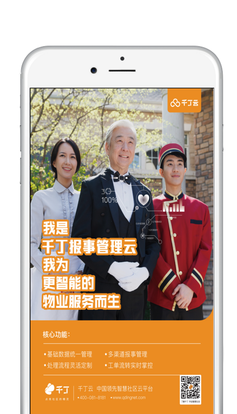 报事管理云与千丁APP及丁管家APP配合,快速完成业主报事流程。服务路径短、服务反馈强、单单可追溯、单单可评价、按需可回访、差评有提醒、业主满意好评结单,形成业务闭环。