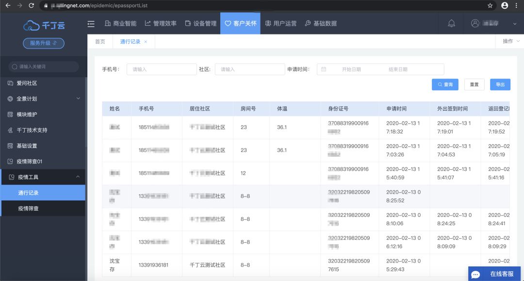 同时,社区、街道的多级管理协同,以及物业内部的层层统计上报,也让原本繁忙的物业人员工作量与日俱增。 再来看看近期朋友圈晒出的各社区的纸质出门条,每张出门条背后都蕴含着物业人员辛苦的付出和危难时期的坚守,但与此同时也隐藏着疫情二次传染的风险。 ![]() 千丁互联推出【码上通行-社区/楼宇临时出入证】通用版与专业版,供全国物业小区免费使用。 安全、便捷的【码上通行】工具,让业主使用更放心,物业管理更方便。 ![]() 数据表单清晰可见 使用千丁互联【码上通行-社区/楼宇临时出入证】不仅业主安全,物业后台还能时时查看社区数据,与街道的管理对接也是so easy了! ![]() 专业版上线啦 【码上通行-专业版】2月14日上线,通用版与专业版可同时供物业公司按需选择使用。 【通用版功能特色】 1.全程无接触:物业省心,业主安心 2.系统匹配信息:省去繁琐的人员筛查与核实程序 3.记录出入时间:便于后台数据统计管理 4.体温数据留存:社区与街道管理时时联动 5.扫码方便快捷:微信扫码登记,无需额外安装APP 专业版在通用版基础上增加了更加严格的通行管理限制 【专业版功能特色】 1.支持灵活配置:物业可选择临时出入证的审核等级,可配置住户出行频次,可区别居家人员与需外出工作人员 2.与社区住户疫情筛查功能强关联:物业后台可按需查看重点关注人员健康档案 深受物业欢迎 【码上通行】工具通用版上线以来,收到大量物业社区的咨询与使用申请,如果您想告别传统的纸质出门条,快与我们联系吧! 千丁助力,共同抗疫! ![]() | |