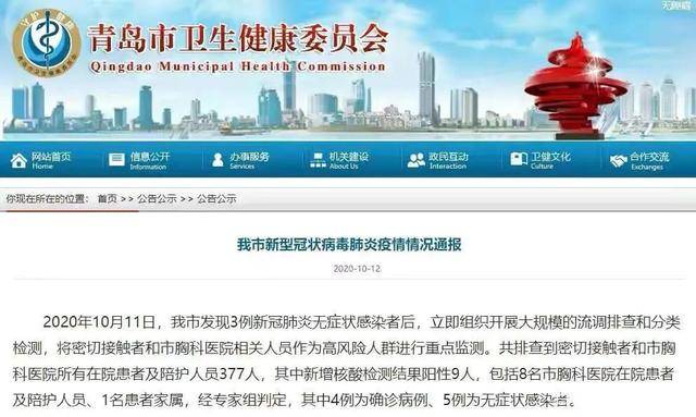 “2020年10月11日青岛市新增3例新型冠状病毒肺炎无症状感染者,青岛市立即启动应急响应,进行应急处置,组织青岛市城区范围内全员核酸检测。”